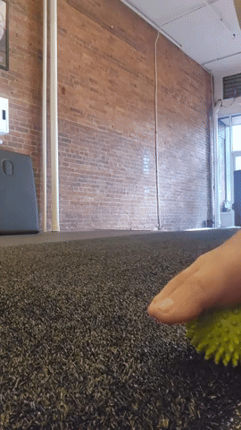 Tight calves are frequent cause of PF, so I roll my calves; then I roll out my feet.
