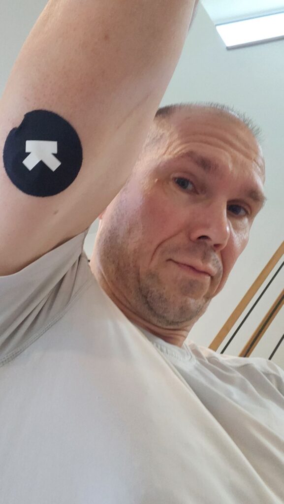 First day. I apply the monitor and I wait an hour before eating. Unfortunatly I screw up syncing the monitor to my phone so I wait another hour. I am starving.